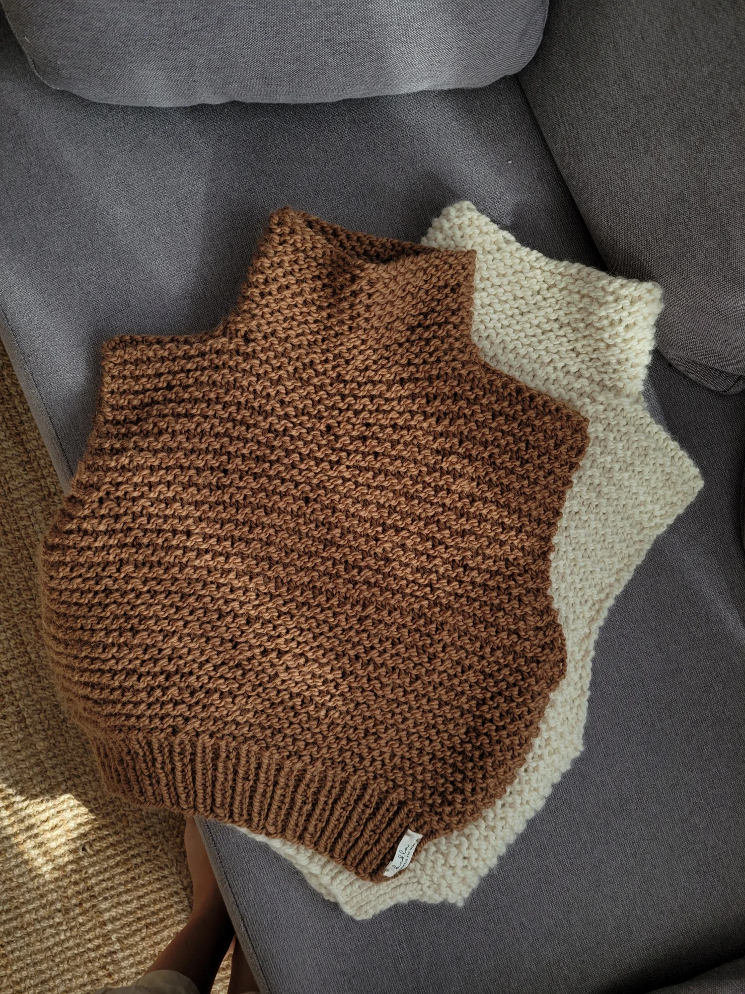 Kamizelka Andes Vest to bardzo ciepła i gruba kamizelka z półgolfem zrobiona ręcznie na drutach z wełny peruwiańskich owiec i alpaki.