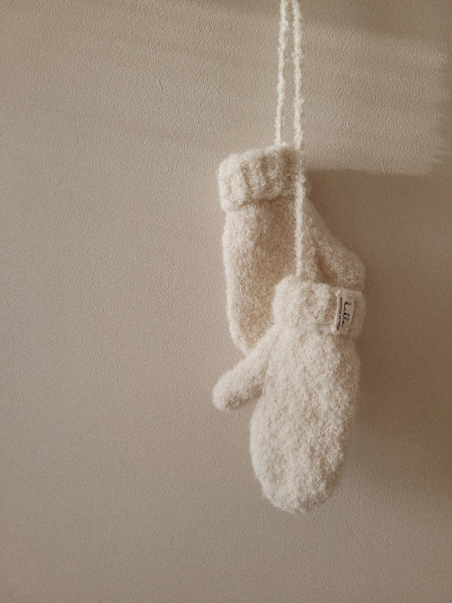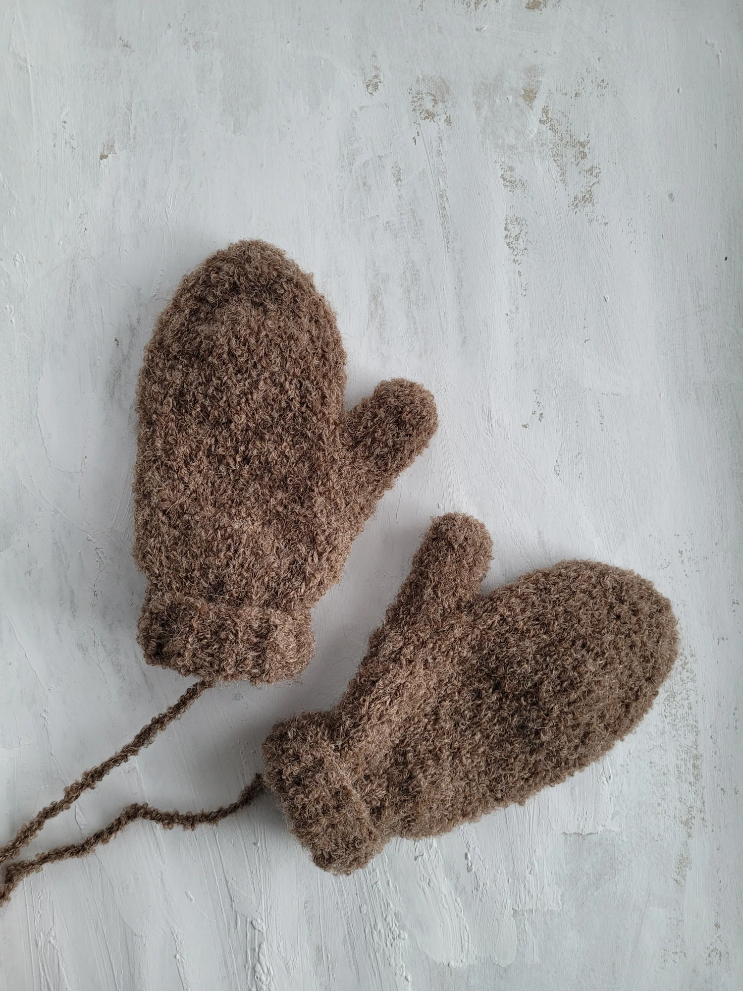 Rękawiczki Full of Knots to niezwykle miłe i miękkie w dotyku rękawiczki zrobione ręcznie na drutach z wełny alpaki typu bouclé. Posiadają sznurek - niezgubek aby mogły towarzyszyć Ci jak najdłużej :)