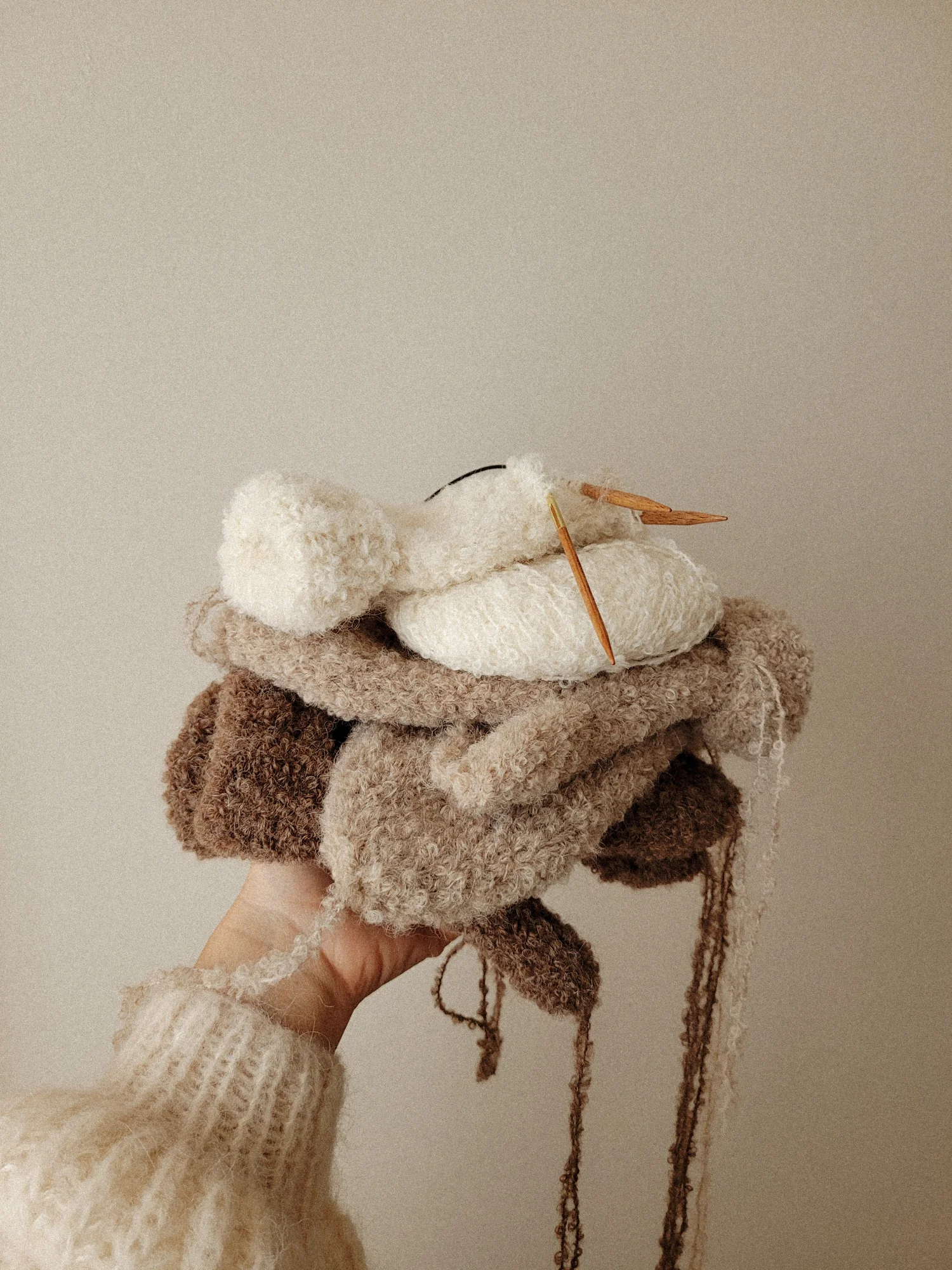 Bouclé po francusku oznacza małe pętelki i odwołuje się do licznych supełków na czystej alpace, co nadaje włóczce z której są zrobione charakterystyczny wygląd i podkreśla jej miękkość. Włóczka posiada certyfikat Oeko-Tex® Standard 100. Włókna są nieprzetworzone, co oznacza, że włóczka została tylko uprana oraz, że przed farbowaniem nie została poddana obróbce chemicznej.