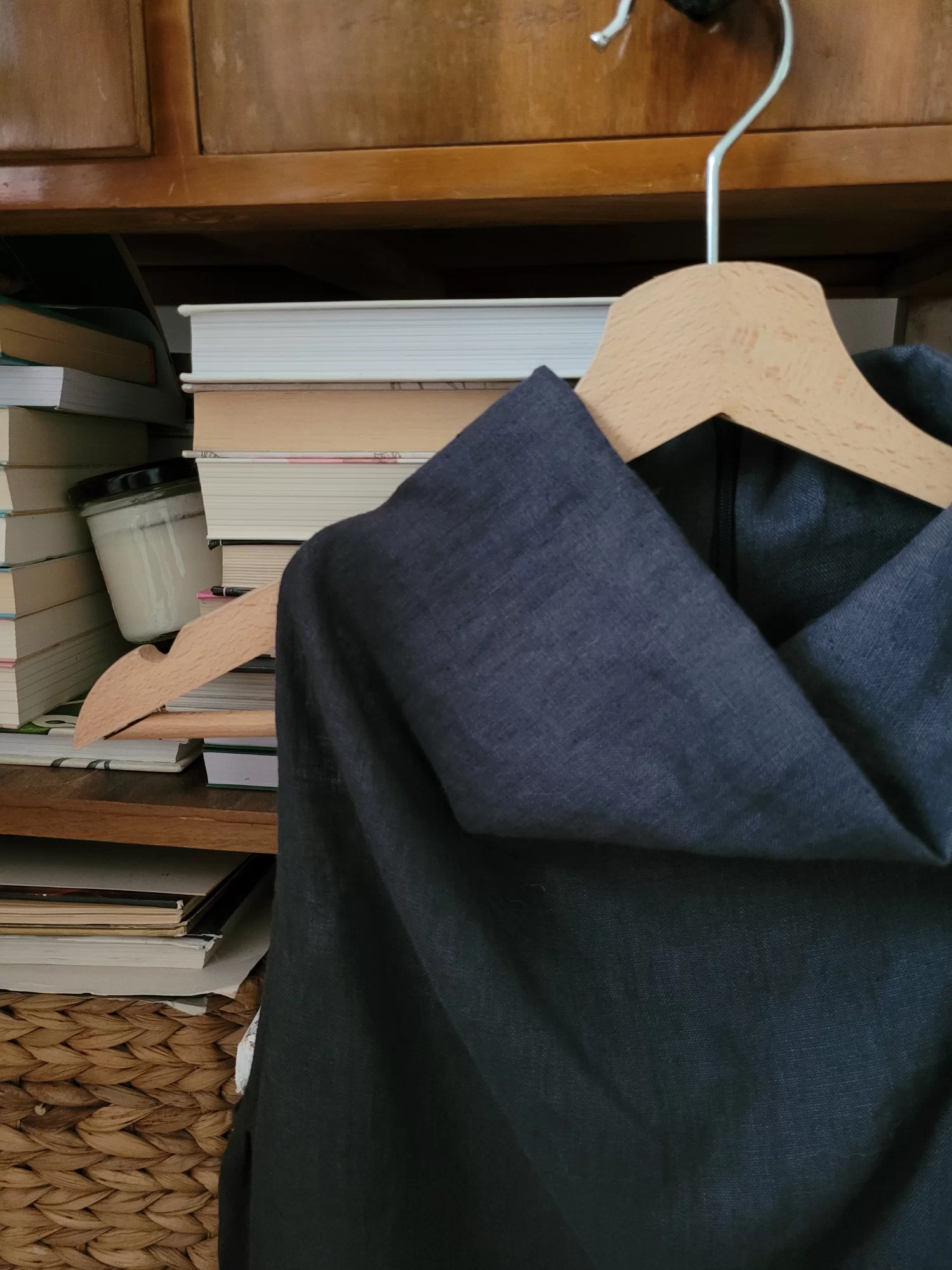 Uszyty jest z małej pracowni krawieckiej z polskiego zmiękczanego lnu.