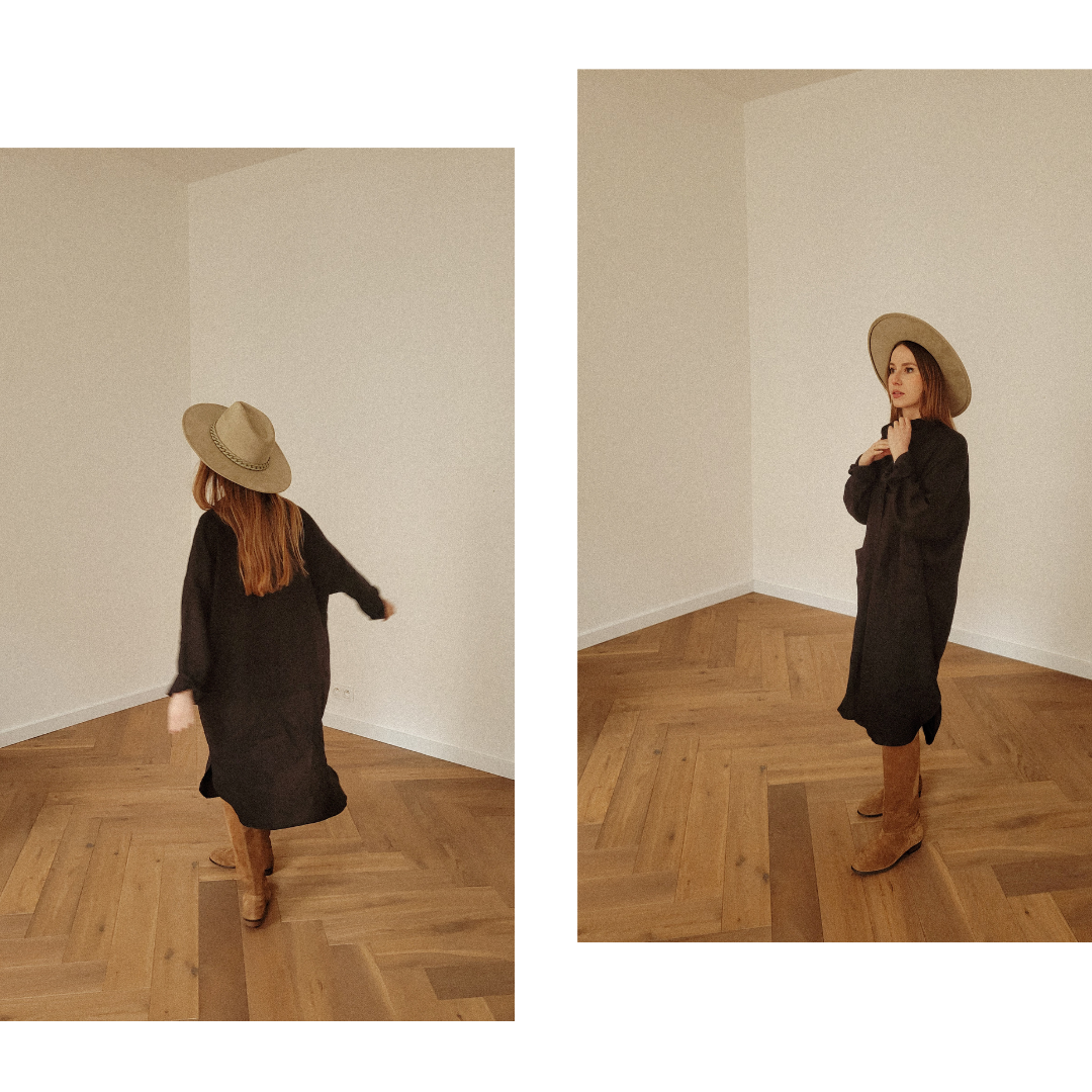 Norah Linen Dress to lniana oversizowa sukienka koszulowa z dużymi, wygodnymi kieszeniami i stójką. Zapinana jest na guziki ukryte pod plisą. Ma prostą, minimalistyczną i ponadczasową formę.